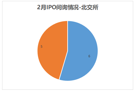 2月1日-2月28日,北交所处于“已问询状态”的企业有11家,其中6家在2月已回复问询,5家暂未回复问询。