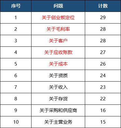 根据对截至2022年2月28日问询回复的43家创业板IPO企业分析统计,深交所对IPO企业几大关注点进行了询问,情况如下: