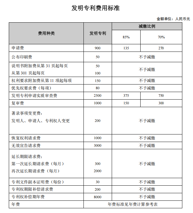注:对专利开放许可实施期间的专利年费减缴15%,同时适用其他专利收费减免政策的, 可以选择适用最优惠的政策, 但不得重复享受。