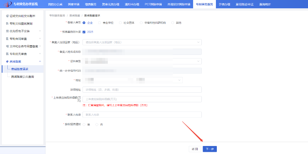step2:选择费减备案,按要求填写全部信息后上传所需材料(PDF扫描件)