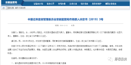 除了债务问题外,新光圆成内部问题层出不穷,还涉及多项违法违规行为。2019年12月,新光圆成及相关人员收到中国证券监督管理委员会安徽监管局下发《行政处罚决定书》。其中显示,周晓光、虞云新作为新光圆成董事、实际控制人,其指使、安排新光集团非经营性占用上市公司资金的关联交易事项、上市公司违规担保事项、共同借款事项,不履行信息披露义务,情节严重。