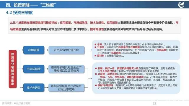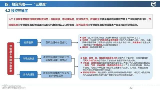 从三个维度来发掘投资维度和投资标的:应用前景、市场成熟度、技术先进性。应用前景主要是看该细分领域在整个产业链中价值占比,市 场成熟度主要是看该细分领域及对应企业市场规模以及订单情况,技术先进性主要是看该细分领域技术产品是否已经足够成熟。