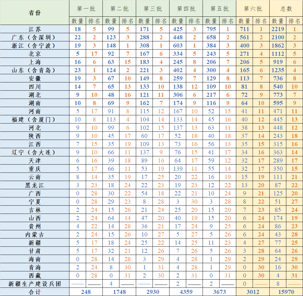 全国各省第一批到第六批专精特新小巨人数据汇总