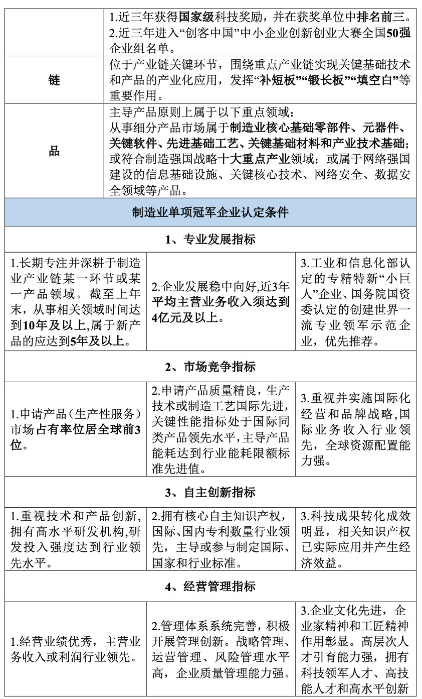 省级/国家级工程技术研究中心、省级/国家级工程研究中心、省级/国家级企业技术中心、专精特新“小巨人”、制造业单项冠军、国家级/省级专利奖、重点实验室、智能工厂、绿色工厂、首台(套)重大技术装备、新一代信息技术融合应用新模式、质量标杆等。