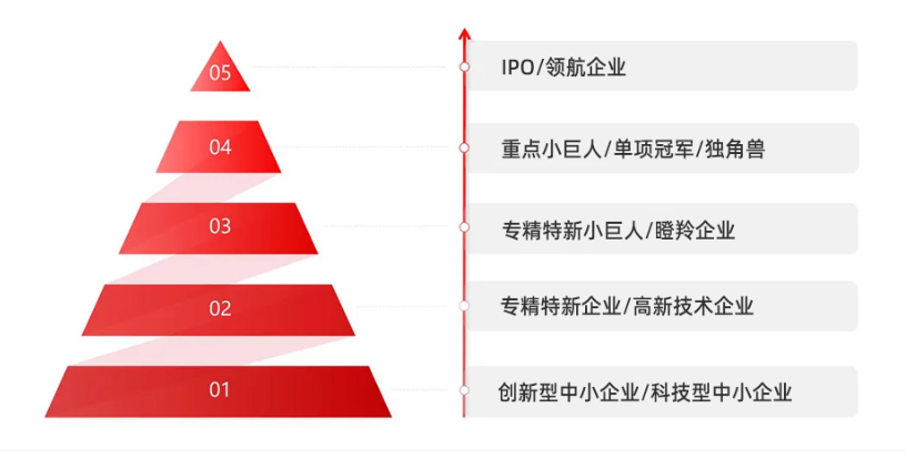 专精特新专注细分领域市场,具备极强的创新与抗风险能力,是产业链的关键环节。认定分为创新型中小企业→专精特新中小企业(超14万家)→专精特新小巨人(1.46万家)→制造业单项冠军四级梯度,企业需逐级进阶。