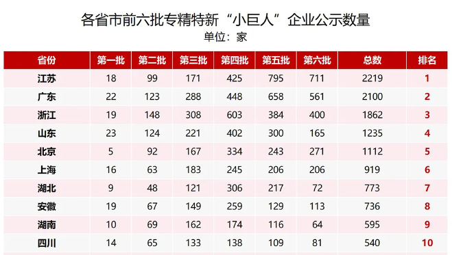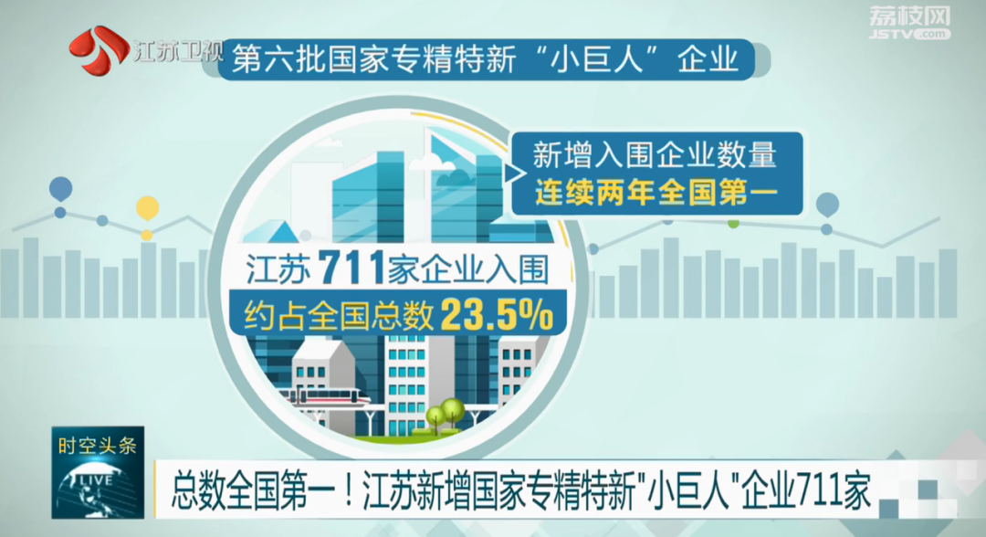 工信部近日发布第六批国家专精特新“小巨人”企业名单,江苏711家企业入围,约占全国总数23.5%,新增入围企业数量连续两年全国第一。