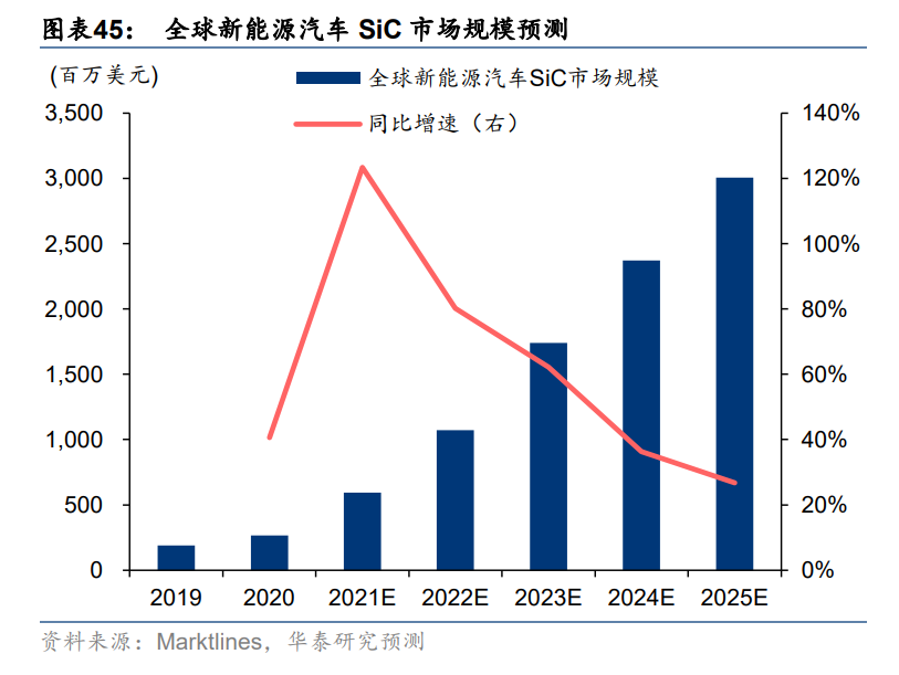 预计 2025 年全球新能源汽车 SiC 市场规模将达到 30.1 亿美元