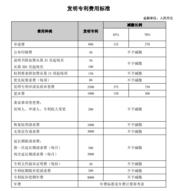 一、 专利费用标准