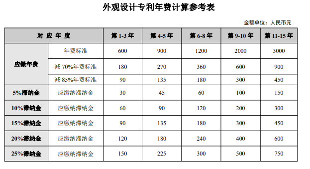 外观申请费和审查费:分别上涨36%、10% (外观检索费无变化)