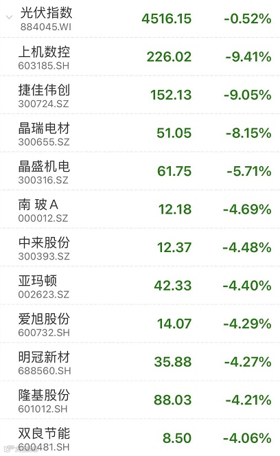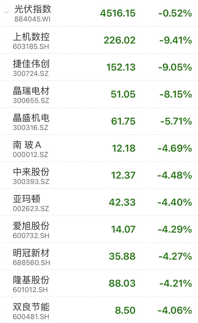 光伏板块方面:光伏股集体回调,隆基股份跌超4%。