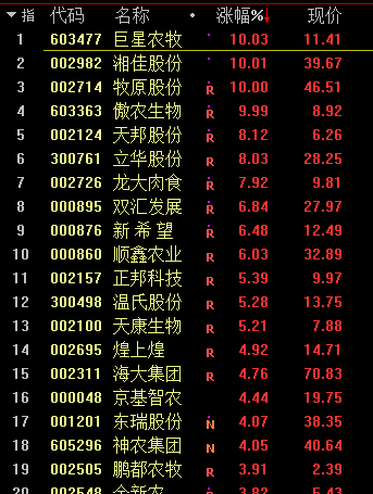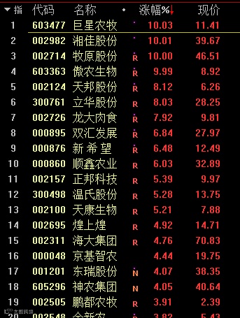 午后猪肉股继续大涨,牧原股份涨停,此前巨星农牧、湘佳股份等涨停。
