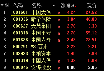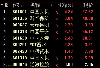新华保险、中国平安、中国人寿三家险企涨幅居前。