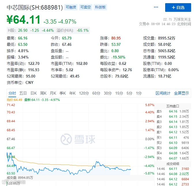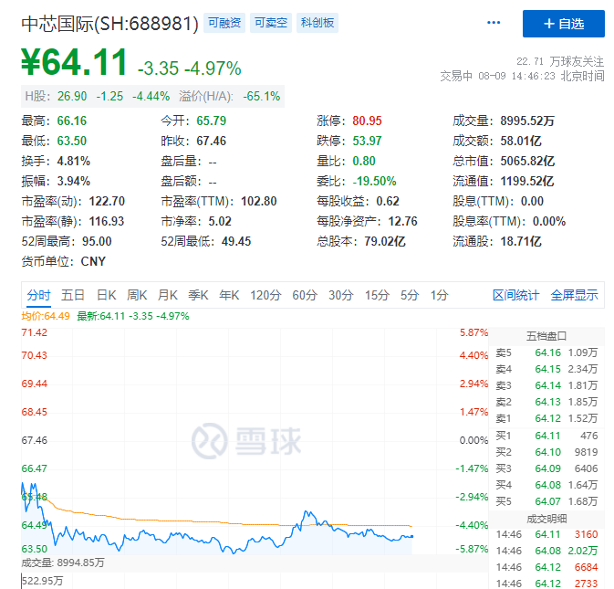 宁德时代跌幅逾5%,中芯国际跌幅近5%