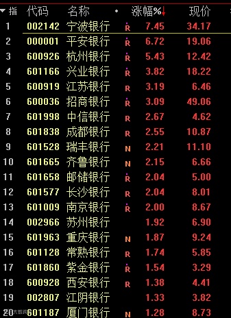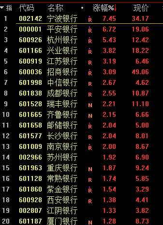 银行股银行股集体反弹,杭州银行、平安银行、宁波银行均涨近6%
