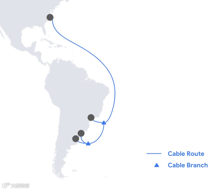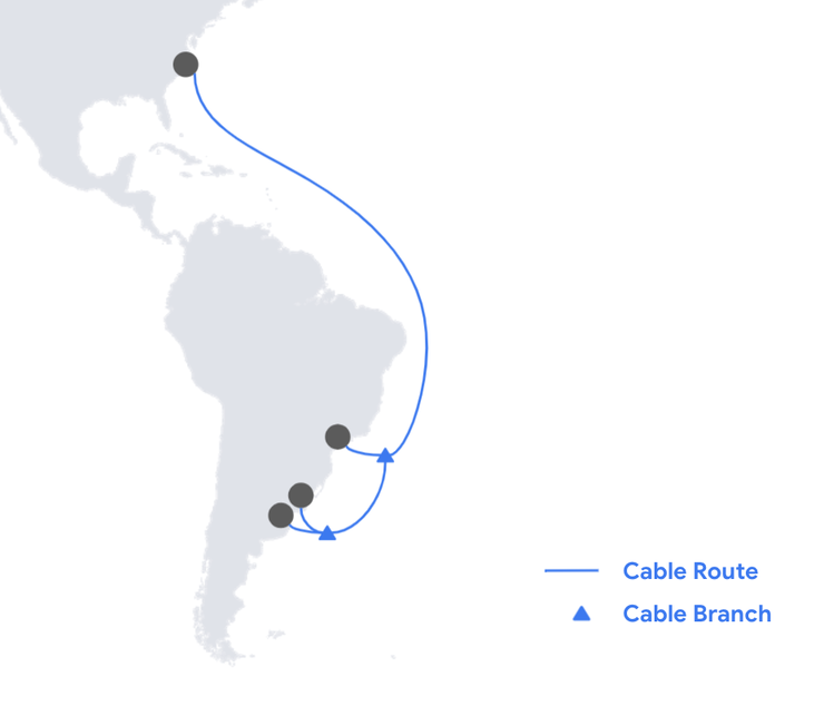 谷歌近日宣布计划建造一条新的海底电缆,该电缆将连接美国东海岸和阿根廷拉斯托尼纳斯,并在巴西和乌拉圭登陆。