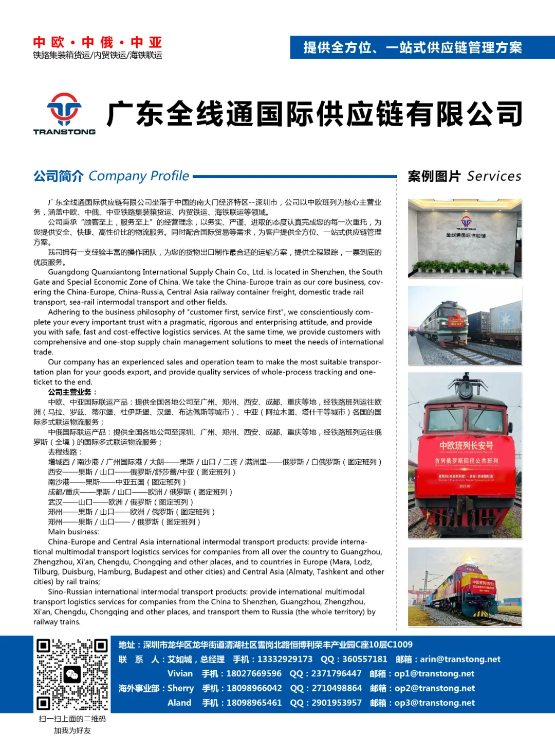 产品优势:中欧·中俄·中亚;铁路集装箱货运/内贸铁运/海铁联运