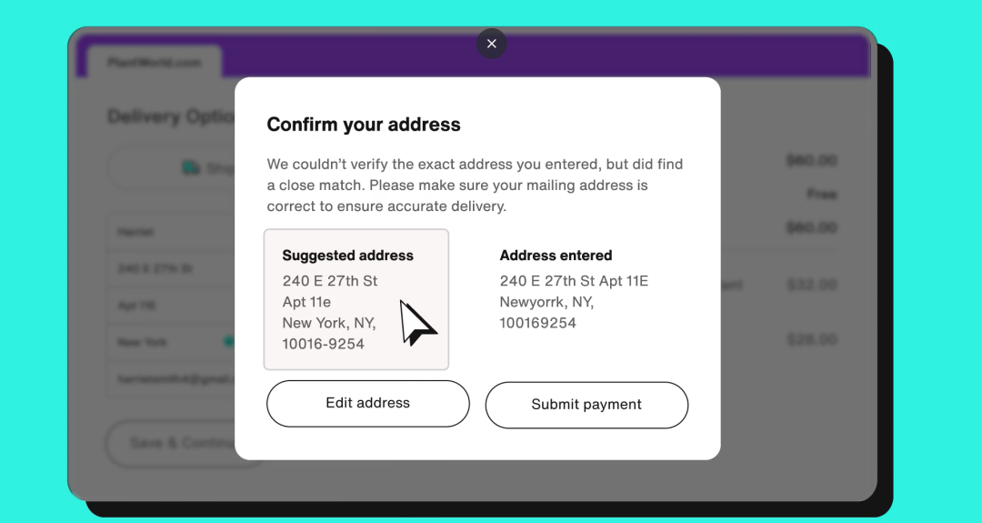 Loqate不仅可以自动补全地址,还能对地址进行实时验证,确保输入的地址是真实且有效的。如果系统检测到拼写错误或不完整信息,会自动纠正并提示消费者修改。例如,将“123 Main St, Los Angls”修正为“123 Main Street, Los Angeles, CA 90012, USA”。