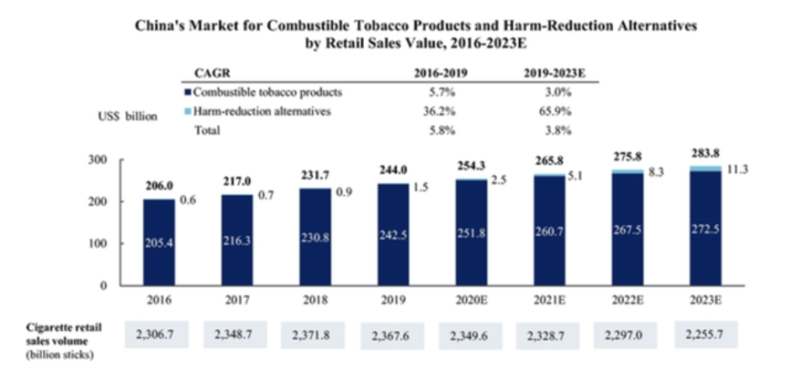 根据CIC(China Insights Consultancy)报告,到2023年,中国电子烟市场预计将达到113亿美元,自2019年起复合增长率达到65.9%。2019年,中国有2.867亿传统烟民,行业潜在市场规模1129 亿元。这意味着中国电子烟行业未来的发展空间十分可观,是绝对的高潜力赛道。或是基于以上原因,电子烟行业一直颇受资本市场垂青。