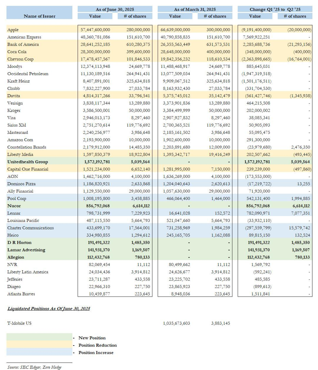 最大的抛售股票包括苹果公司、美国运通公司和美国银行。