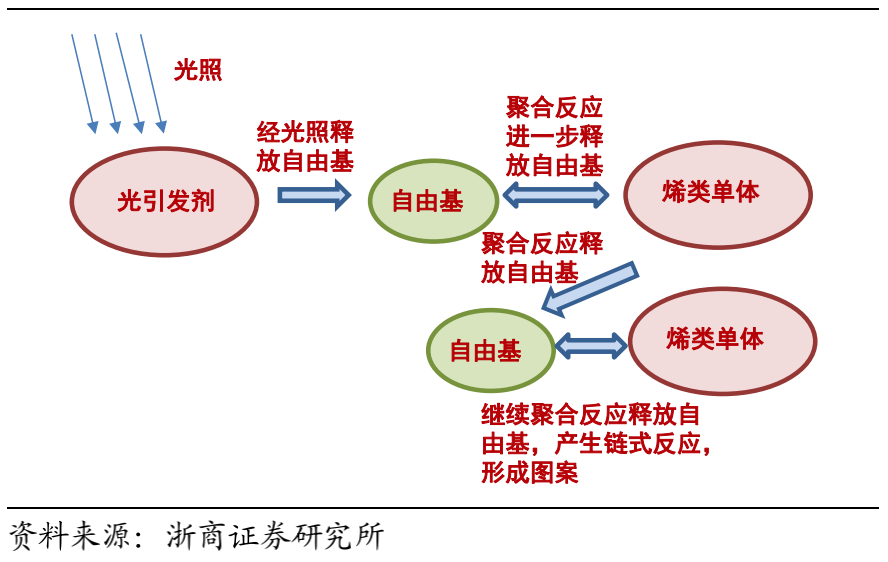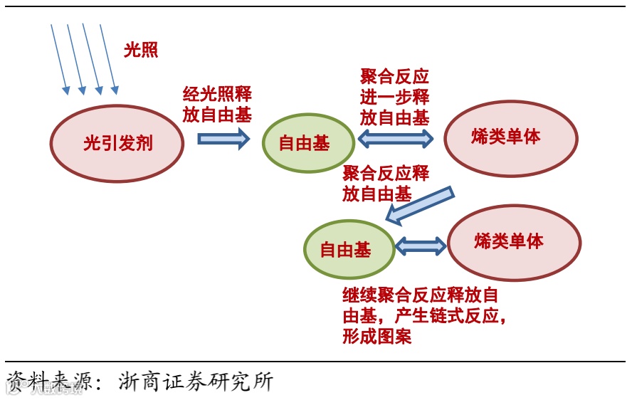 按照化学结构分类;光刻胶可以分为光聚合型,光分解型,光交联型和化学放大型。光聚合型光刻胶采用烯类单体,在光作用下生成自由基,进一步引发单体聚合,最后生成聚合物;