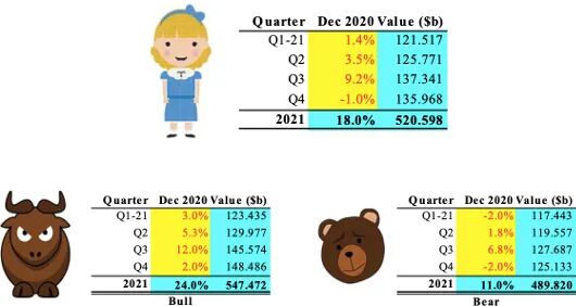 佩恩说,半导体市场每年将增长11%至24%,其中18%为最有可能的数字。鉴于短期内产能扩张能力有限,市场增长将受供应短缺和芯片价格上涨的推动,尤其是在下半年。这远远高于2020年12月世界半导体贸易统计(WSTS)的预测。