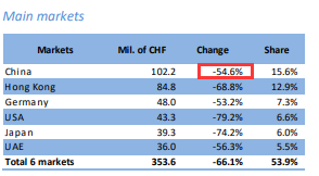 因为3月瑞士钟表对中国的出口额甚至同比上升10.5%,4月瑞士钟表对中国出口额仅下跌16.1%。
