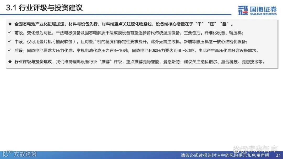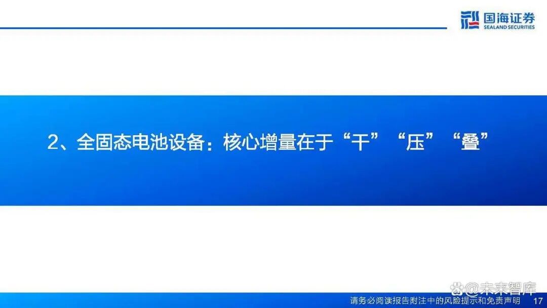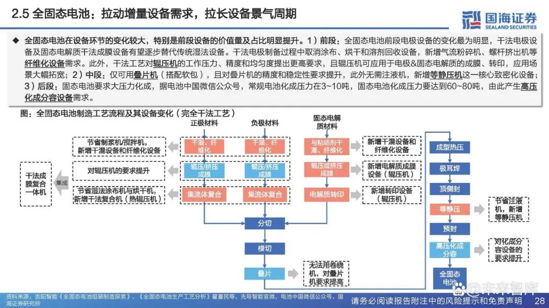 2、全固态电池设备:核心增量在于“干”“压”“叠”