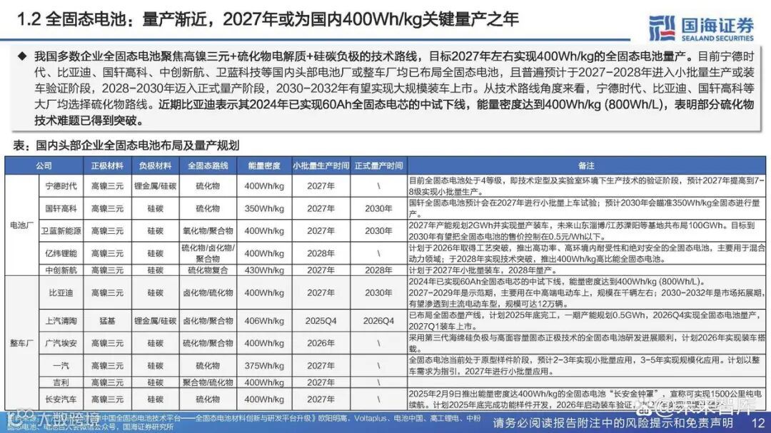 全固态电池:量产渐近,2027年或为国内400Wh/kg关键量产之年
