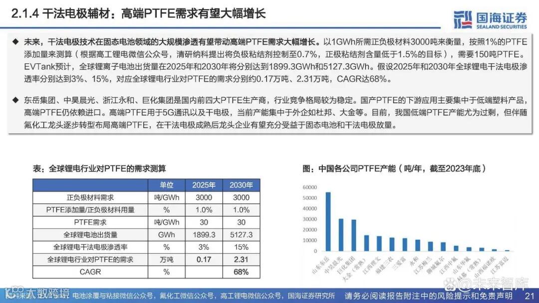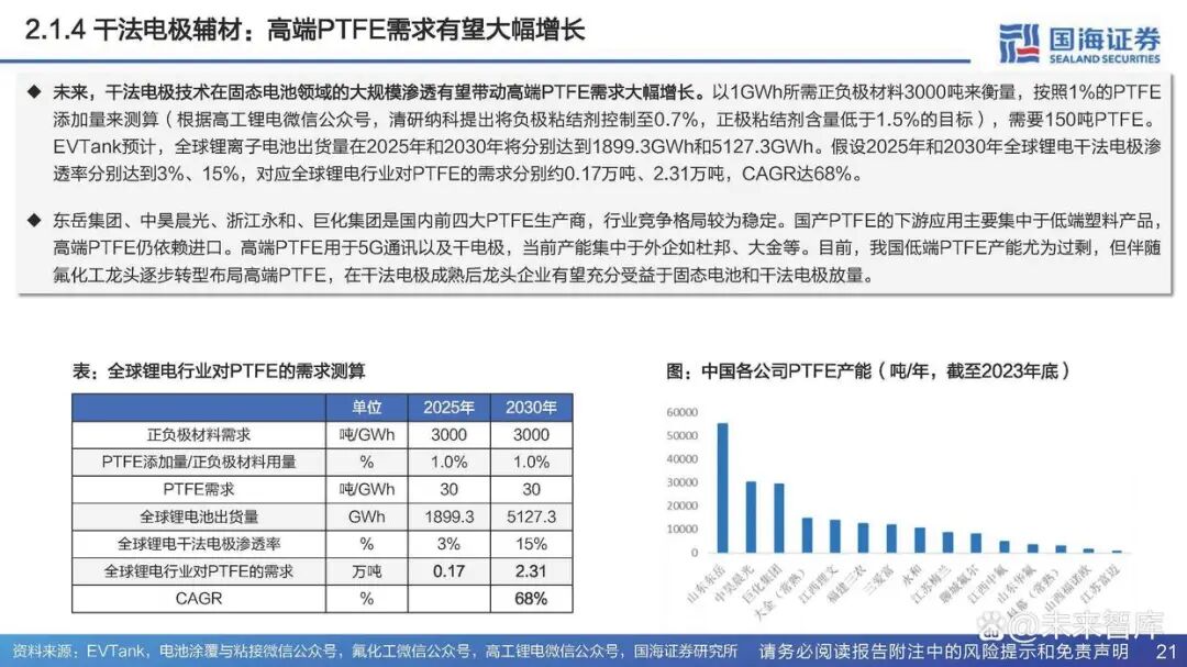 目前干法电极工艺尚未完全成熟,性能和成本是制约其大规模应用的两大前置条件。干法电极工艺面临主要的挑战包括混料均匀性、自支撑膜成型的稳定性、连续制造的效率、高速制备下粘结剂含量的控制,以及与湿法电极的成本竞争力。此外,干法工艺常用的PTFE粘结剂对于固态电池负极稳定性不足,因此负极目前主要采用湿法工艺。