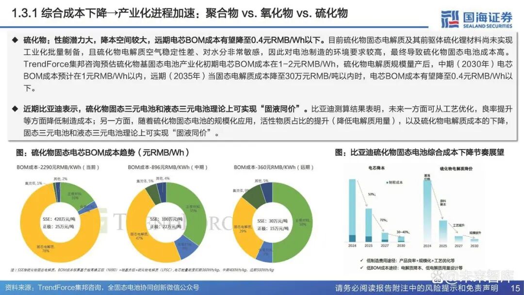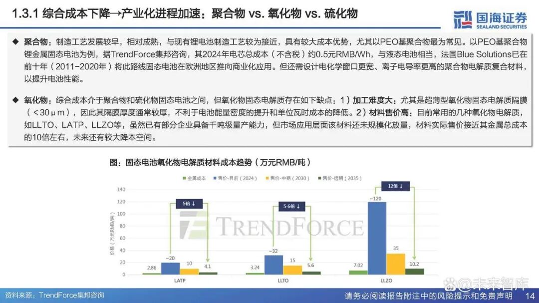 综合成本下降→产业化进程加速:聚合物 vs. 氧化物 vs. 硫化物