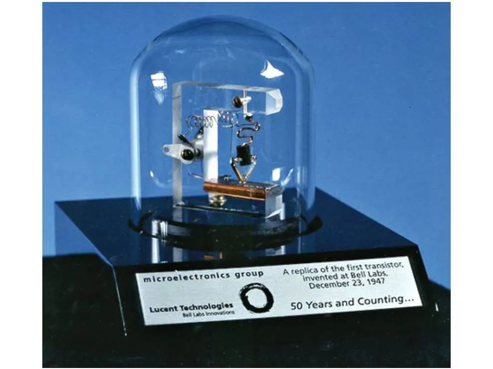 到1947年11月下旬,Bardeen和Brattain设法制造出一种可工作的晶体管,直到1947年12月16日,他们一直在不断改进这种晶体管。在这一天,他们的研究最终达到了用硅制成的工作“点接触”晶体管的顶峰。坐在锗晶体上的两个金箔触点。它也被称为“ PNP点接触锗晶体管”。他们于12月23日进行了巡回演示,向贝尔实验室展示了该固态设备的工作原理。Bardeen和Brattain还花了一些时间为其发明申请专利,并批准将其公开发布给军队。1948年6月,贝尔实验室正式宣布了革命性的固态设备,他们称之为“晶体管”。