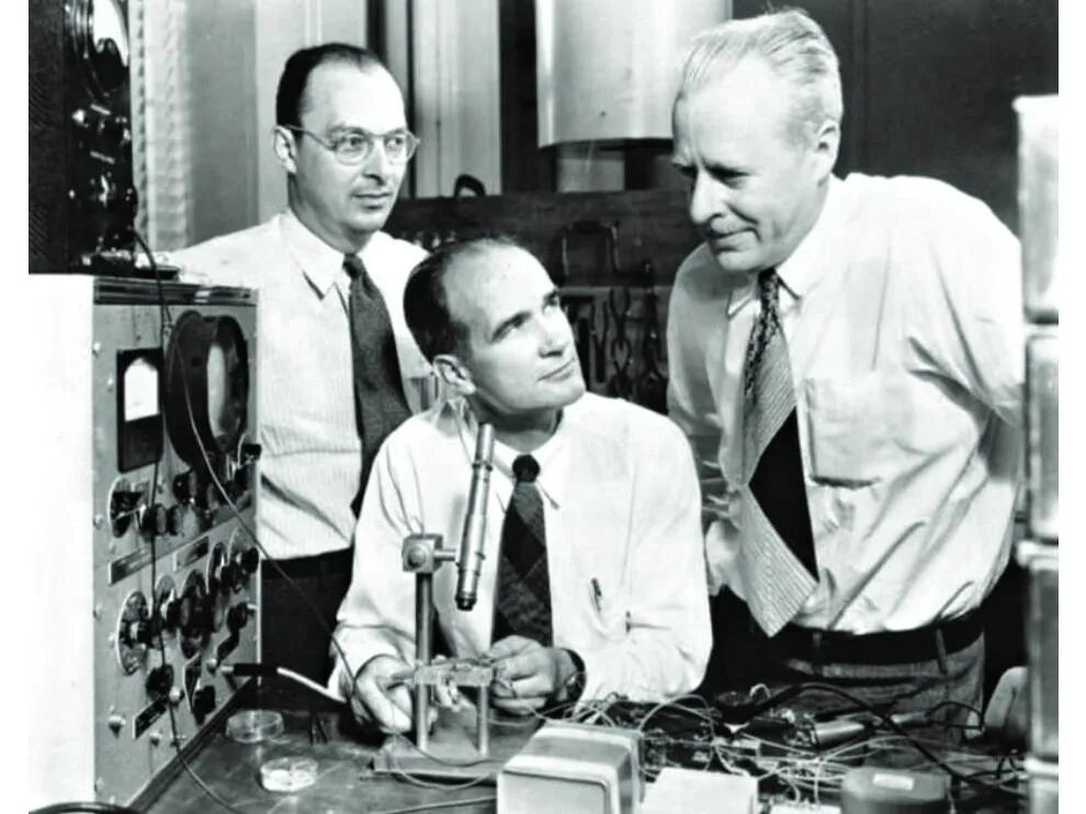 然而,Shockley继续构建由Bardeen和Brattain创建的第一个工作晶体管的更可靠和可复制的版本。他很成功,并于1952年推出了他的双极结型晶体管。它是由没有触点的固态半导体材料制成的。本发明优于点接触型,并在接下来的30年中主导了整个行业。他申请了晶体管效应和晶体管放大器的专利。1956年,贝尔实验室的所有三位物理学家,William Shockley, Walter Brattain 和 John Bardeen 因其贡献而被授予诺贝尔物理学奖。