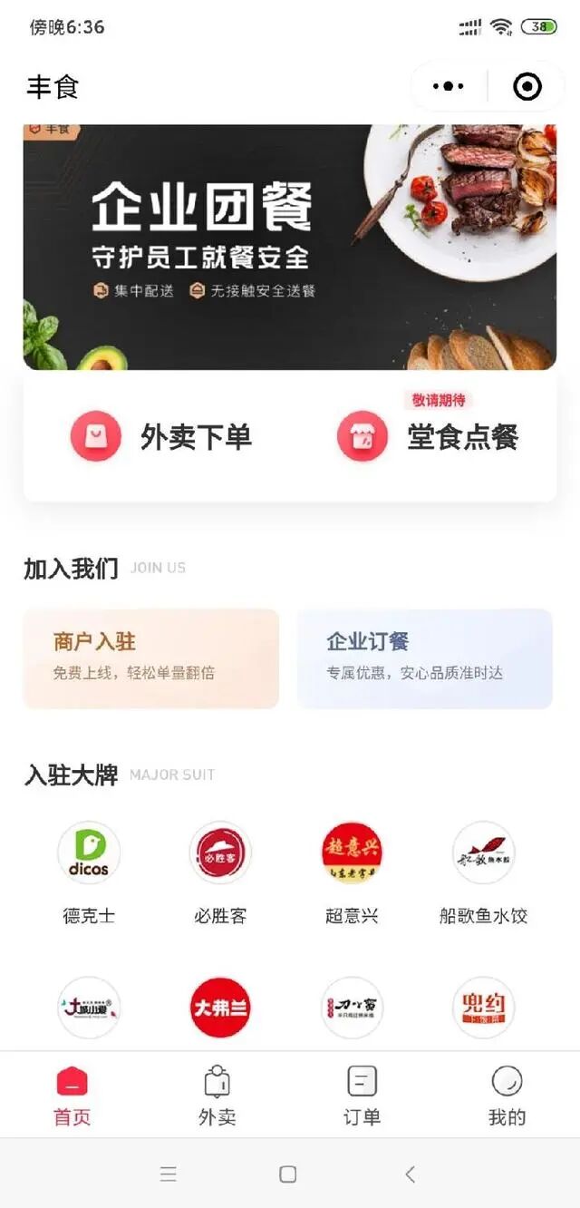 根据小程序页面信息,丰食已经获得德克士、必胜客、超意兴、船歌鱼水饺、大城小爱、大弗兰、刀小蛮、兜约下饭菜、饭戒、粉氏、福记、福客优选、云海肴、吉野家、老娘舅、味千拉面、西贝、真功夫、俏江南等近百家连锁品牌入驻。