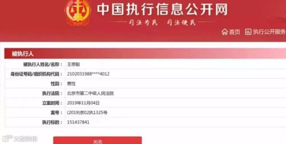 王思聪于11月4日被北京市第二中级人民法院列为被执行人,执行标的1.5亿余元。之后,中国执行信息公开网查询显示,法院已在11月19日向王思聪下达了限制消费令。