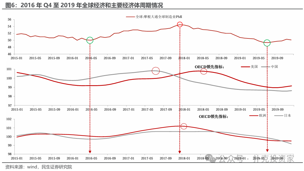 从经济周期角度看,全球经济经历了一个完整的经济周期。2016年年中触底反弹,2017年12月见顶,直至2019年下半年触底(图6)。其中,在主要经济体里,美国经济的周期韧性更强,体现在经济见顶相对晚,见底则相对早。