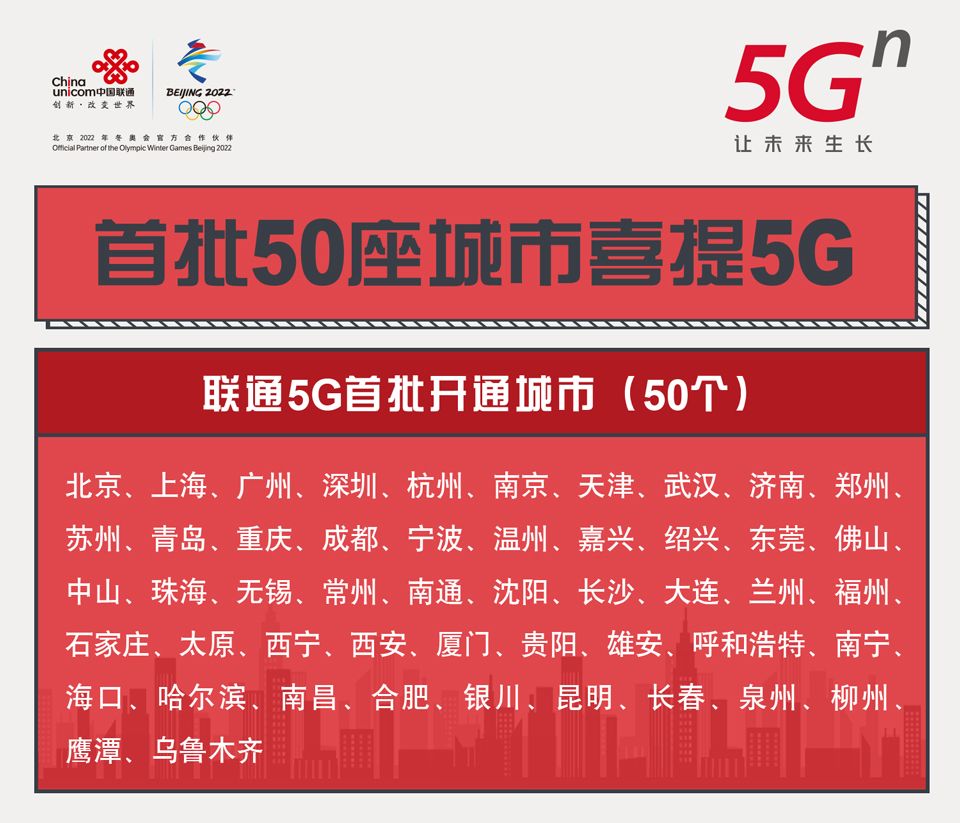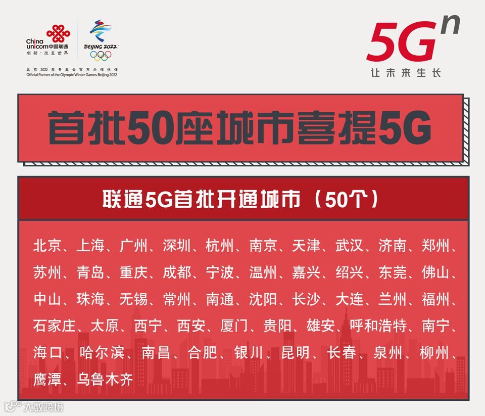 中国移动、中国联通、中国电信三大运营商也宣布,在首批50个城市可以提供5G商用服务。来看看你的家乡上榜了吗?