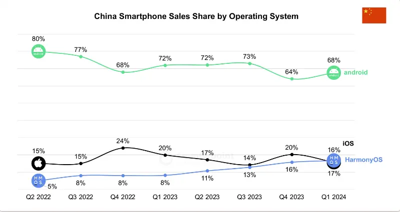 华为鸿蒙超越苹果iOS,成中国市场第二大操作系统