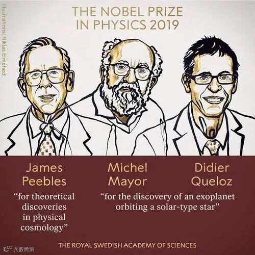 不过今天,也就是2019年10月8号,我们仍然要为获奖的三位宇宙天体学物理学家叫好。