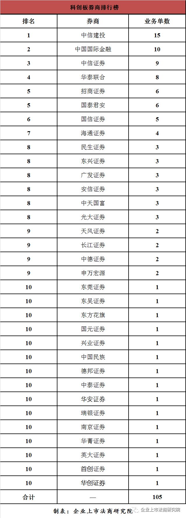 从券商看,排在前三名的分别是中信建投(15家)、中信证券(10家)、中金证券(9家);
