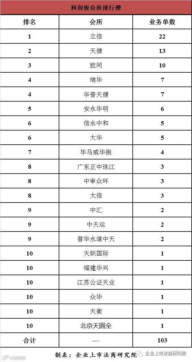 从会计师事务所看,排在前三名的分别是立信(22家)、天健(13家)、致同(10家) ;