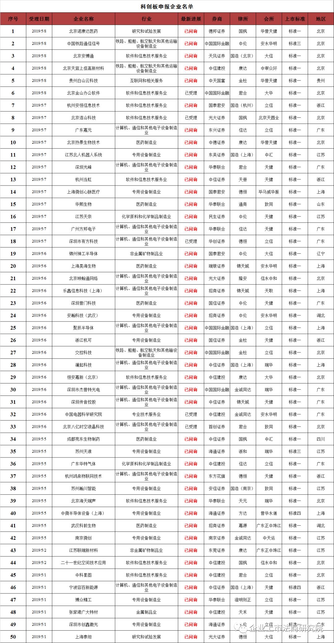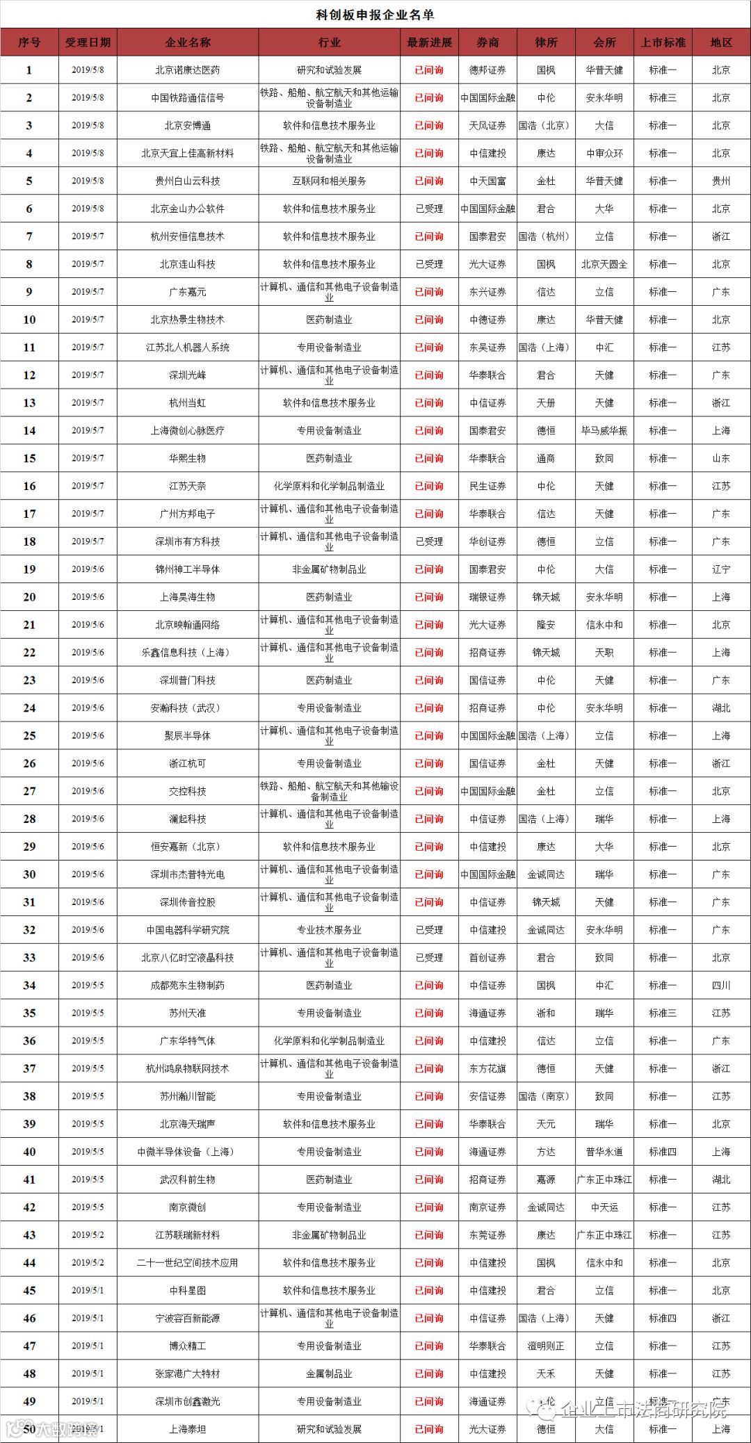103家科创板申报企业全名单