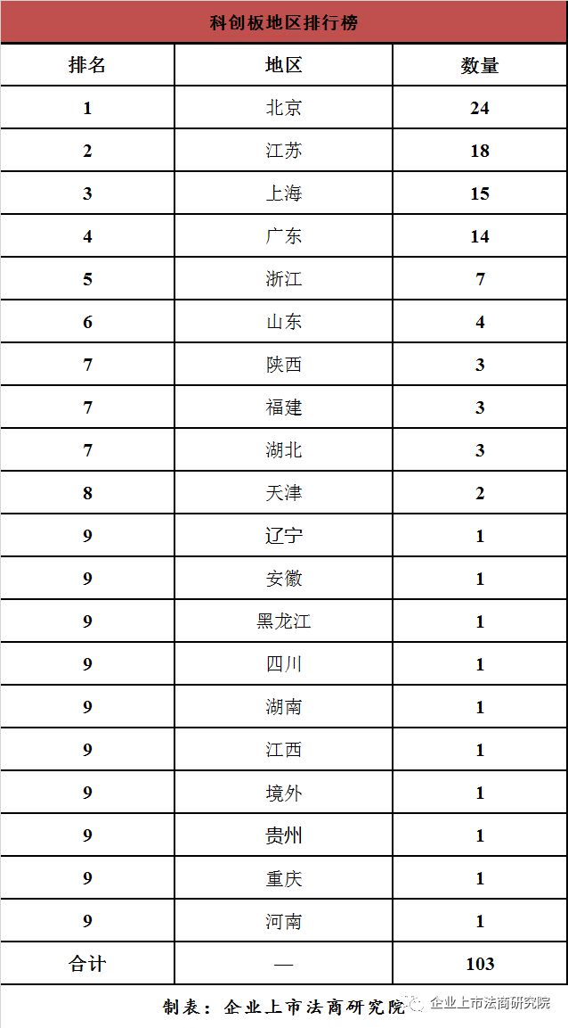 从地区看,排在前三名的分别是北京(24家)、江苏(18家)、上海(15家);