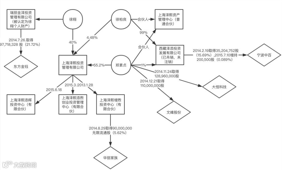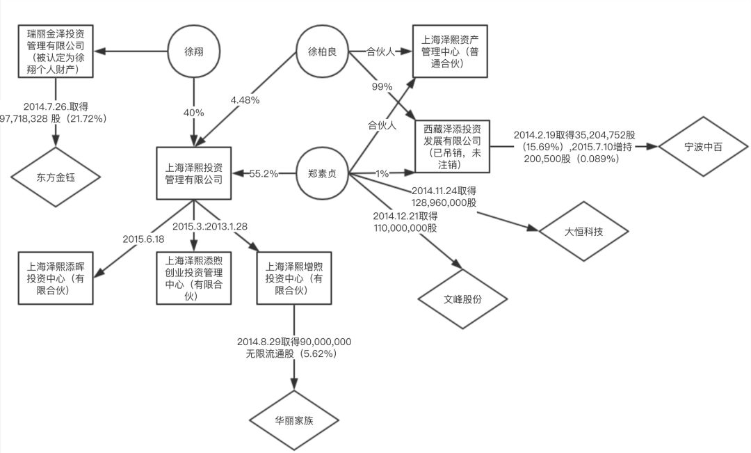 1、根据工商登记信息显示,上海泽熙投资管理有限公司,成立时间为2009年12月7日,其股东结构为徐翔持股40%、郑素贞55.2%、徐柏良4.48%。