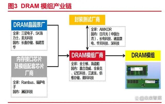 (1)存储模组厂商分为 IDM 厂商和第三方模组供应商。存储原厂完成晶圆制造后, 仍需开发大量应用技术以实现从标准化存储晶圆到具体存储产品的转化,部分存储原厂 (IDM 厂商)凭借晶圆优势向下游存储产品领域渗透,同时独立的存储器供应商(第三方 模组厂商)应运而生。根据市场需求确定存储产品方案后,模组厂商开发存储芯片固件, 匹配存储晶圆并定制主控芯片等主辅料,委托专业的封装测试企业按照公司设计的封装测 试方案进行封装测试,完成模组集成后最终销售给 OEM 客户或直接通过现货市场销往渠道 商。模组厂商的存在,拓宽了存储芯片的应用场景,提升了半导体存储器在各类应用场景 的适用性,推动实现存储晶圆的产品化,是存储产业中承上启下的重要环节。