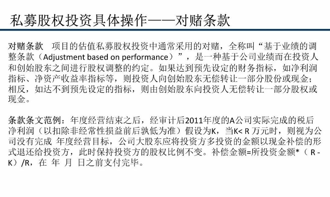 投资者与被投资者是利益与矛盾的统一体。投资方希望得到使自己的投资毫无风险的条款,中小企业在引资过程中有些条款不可以接受。比如海外投资机构在对高科技企业投资中提出相关要求:如果企业在某一时间内的业绩达不到特定水平,则投资方可以要求降低投资额或者被投资方要将款项退还给投资方。这样的条款被投资方绝对不可接受,企业目标就是引入战略投资者,仅想回报而不愿共担风险的资金则要慎重考虑。