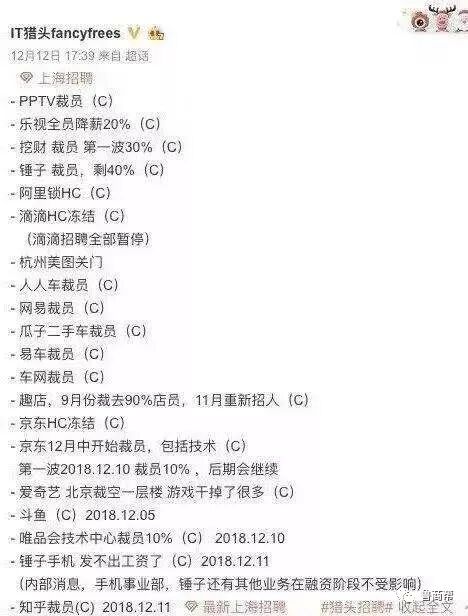 而更让人有些招架不住的是国内各大互联网公司几乎也开始了年底大裁员。比例更是恐怖的达到了,10%、30%、60%甚至是90%......
