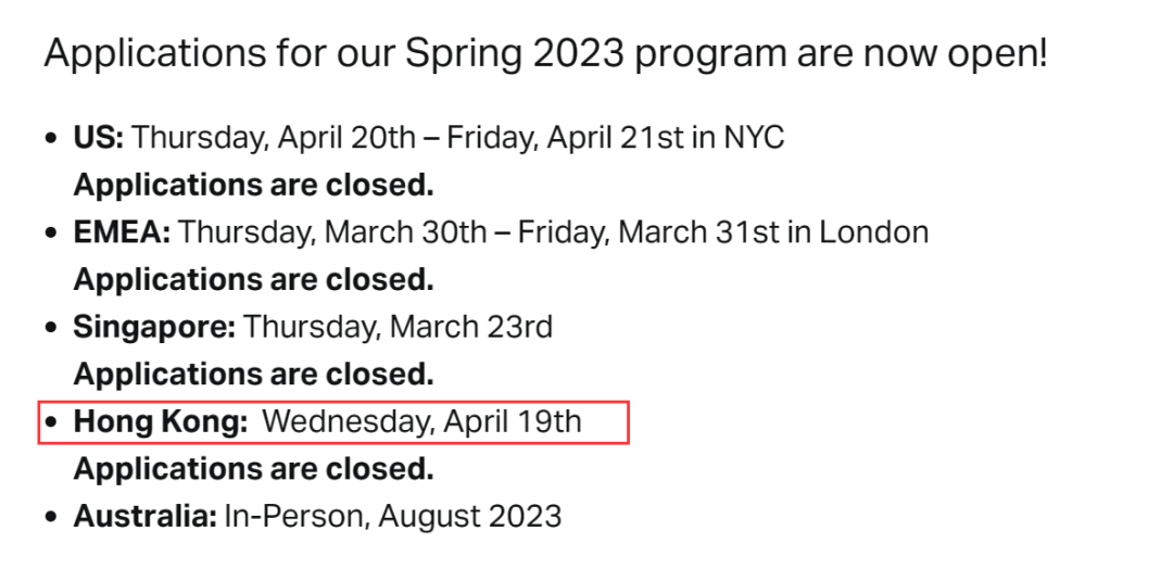 基金君在城堡证券的官网上找到了该项目,信息显示,香港办公室的参观活动是在4月19日,申请早已结束。目前是针对澳洲地区的学子们,参观时间预计在8月。