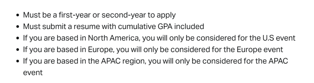 此外,不同地区的学生只能申请本地区的活动,例如北美的学子只能申请参观美国的活动。