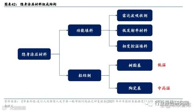 根据华秦科技招股说明书,隐身涂层材料产品是由粘结层和功能层组成的复合涂层,其中 功能层的主要作用是实现材料的隐身功能,同时提高隐身涂层材料的长期耐温性能;粘结 层则是用于增加隐身涂层材料与工件的结合强度,避免材料应用过程中的脱落。同时公司 研发团队发明设计了一种新型扩散阻挡层,解决了高温环境下涂层隐身性能退化的问题, 保证了涂层性能的高温稳定性。