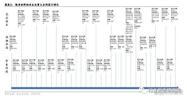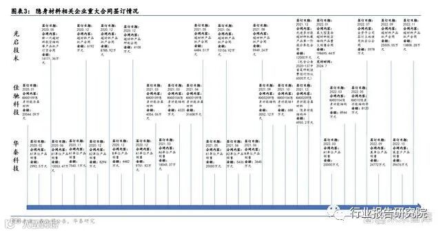 基本面加速兑现进行时,相关企业重大合同陆续落地。我们根据公司招股说明书、重大合 同签订公告梳理了各企业的隐身材料合同签订情况,无论是超材料技术路线的光启技术、 中高温红外隐身材料为主的华秦科技,还是中高温雷达吸波材料为主的佳驰科技都在 2021 年起集中迎来了订单落地,或侧面表明了隐身材料行业基本面正在加速兑现。